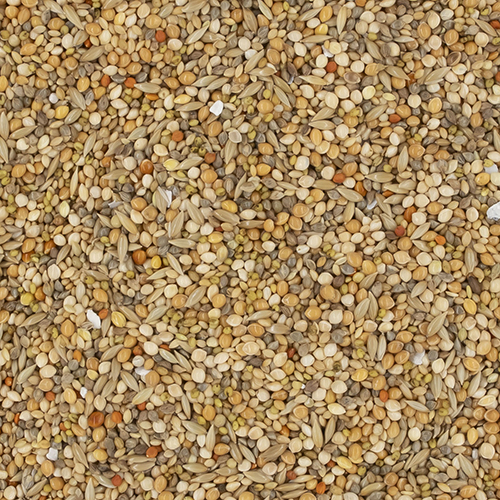 小鳥の好む素材を中心にバランスよく配合した皮付きタイプの主食です フルーツ&野菜と元気をサポートする6つの素材をムキアワにプラス 食べやすさに配慮しました